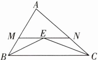 6. 如图,在△ABC中,∠ABC和∠ACB的平分线交于点E,过点E作MN//BC交AB于点M,交AC于点N。若BM + CN = 9,则线段MN的长为