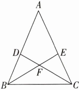 7. [2025蚌埠模拟]如图,在△ABC中,D,E分别是AB,AC边上的点,BD = CE,∠ABE = ∠ACD,BE与CD相交于点F。求证:△ABC是等腰三角形。