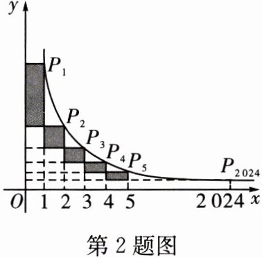 2. [2023 枣庄]如图,在反比例函数$y=\frac{8}{x}(x>0)$的图象上有$P_{1}$,$P_{2}$,$P_{3}$,$\cdots$,$P_{2024}$等点,它们的横坐标依次为$1$,$2$,$3$,$\cdots$,$2024$,分别过这些点作$x$轴、$y$轴的垂线,图中所构成的阴影部分的面积从左到右依次为$S_{1}$,$S_{2}$,$S_{3}$,$\cdots$,$S_{2023}$,则$S_{1}+S_{2}+S_{3}+\cdots+S_{2023}=$。