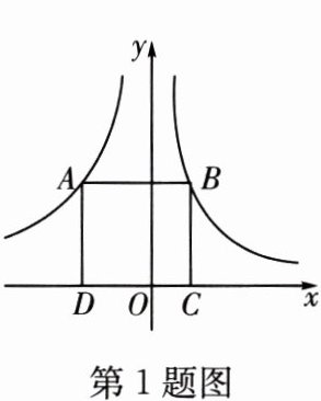 1. [2023 齐齐哈尔]如图,点$A$在反比例函数$y=\frac{k}{x}(k\neq0)$图象的一支上,点$B$在反比例函数$y=-\frac{k}{2x}$图象的一支上,点$C$,$D$在$x$轴上。若四边形$ABCD$是面积为$9$的正方形,则实数$k$的值为