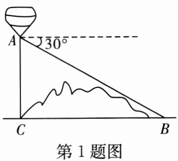 1. 如图,某地修建高速公路,要从 $ B $ 地向 $ C $ 地修一条隧道(点 $ B $,$ C $ 在同一水平线上). 为了测量 $ B $,$ C $ 两地之间的距离,某工程师乘坐热气球从 $ C $ 地出发,垂直上升 $ 100 $ m 到达 $ A $ 处,在 $ A $ 处观察 $ B $ 地的俯角为 $ 30^{\circ} $,则 $ B $,$ C $ 两地之间的距离为(