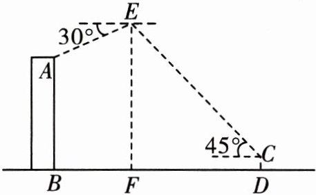 8. 如图,数学兴趣小组用无人机测量一幢楼 $ AB $ 的高度。小亮站立在距离楼底部 $ 94 m $ 的 $ D $ 点处,操控无人机从地面 $ F $ 点,竖直起飞到正上方 $ 60 m $ 的 $ E $ 点处时,测得楼 $ AB $ 的顶端 $ A $ 的俯角为 $ 30° $,小亮的眼睛距离地面 $ 1.7 m $,即 $ CD = 1.7 m $。他从点 $ C $ 看无人机的仰角为 $ 45° $($ B $,$ F $,$ D $ 三点在同一直线上)。求楼 $ AB $ 的高度。(结果精确到 $ 0.1 m $。参考数据:$ \sqrt{3} \approx 1.7 $)