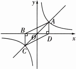 10. 如图,点$A$,$C$分别是正比例函数$y=x$的图象与反比例函数$y=\frac{4}{x}$的图象的交点,过点$A$作$AD\perp x$轴于点$D$,过点$C$作$CB\perp x$轴于点$B$,连接$AB$,$CD$,则四边形$ABCD$的面积为。