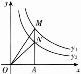 8. [2024 榆林模拟]如图,点$M$在反比例函数$y_{1}=\frac{10}{x}(x>0)$的图象上,过点$M$作$MA\perp x$轴于点$A$,交反比例函数$y_{2}=\frac{k}{x}(x>0)$的图象于点$N$,连接$OM$,$ON$。若$\triangle MON$的面积为$1$,则$k$的值为。