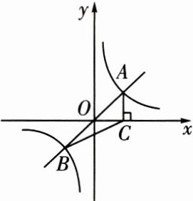 7. 如图,直线$AB$过原点,且交反比例函数$y=\frac{5}{x}$于点$A$,$B$,过点$A$作$AC\perp x$轴,垂足为$C$,则$\triangle ABC$的面积为。