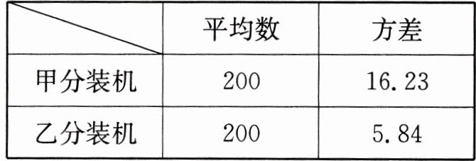 4. 某茶叶厂用甲、乙两台分装机分装某种茶叶(每袋茶叶的标准质量为200g).为了监控分装质量,该厂从它们各自分装的茶叶中随机抽取了50袋,测得它们的实际质量(单位:g)并分析如下表: