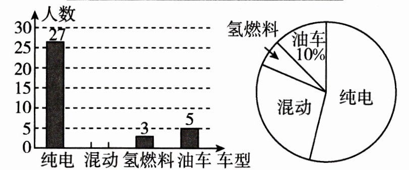 (4)若此次汽车展览会的参展人员共有 4 000 人,请你估计喜欢新能源(纯电、混动、氢燃料)汽车的有3600人