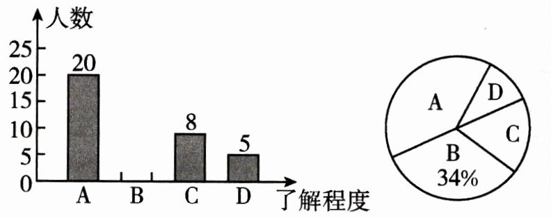 (2)补全条形统计图如图所示,“了解较少”所对应的扇形的圆心角度数为$36^{\circ}$