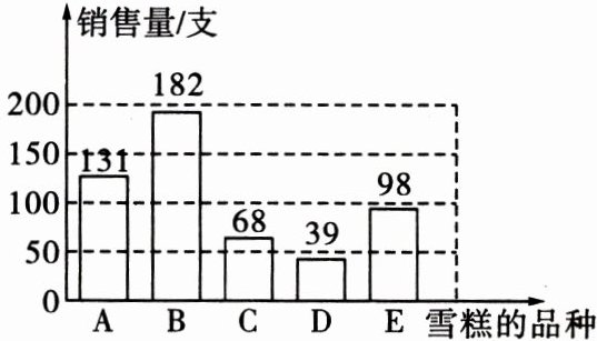 5. 小丽统计了最近一个星期李大爷平均每天能卖出的 A,B,C,D,E 五种品牌的雪糕的数量,并绘制出如下统计图.根据小丽的统计结果,请你为李大爷设计一个进货方案.