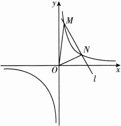 6. [2024 雅安]如图,在平面直角坐标系中,一次函数的图象 $ l $ 与反比例函数 $ y = \frac{k}{x} $ 的图象交于 $ M(\frac{1}{2},4) $,$ N(n,1) $ 两点。