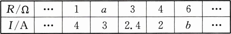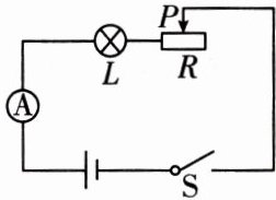 7.【应用意识】在一次物理实验中,小冉同学用一固定电压为 $ 12 $ V 的蓄电池,通过调节滑动变阻器来改变电流大小,完成控制灯泡 $ L $(灯丝的阻值 $ R_L=2 $ Ω)亮度的实验(如图).已知串联电路中,电流与电阻 $ R $,$ R_L $ 之间关系为 $ I=\frac{U}{R+R_L} $,通过实验得出如下数据: