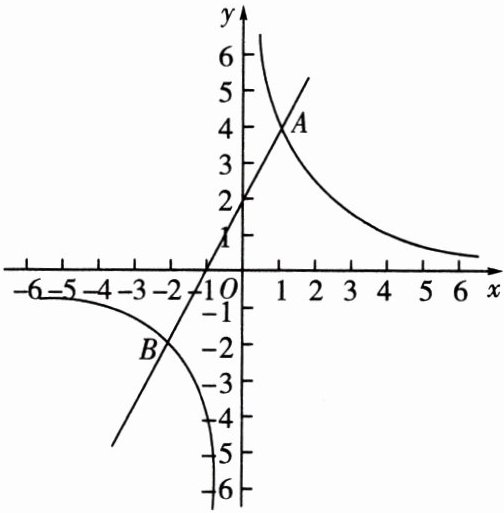 8. 如图,直线 $ y = 2x + m $ 与 $ y = \frac{n}{x}(n \neq 0) $ 交于 $ A $,$ B $ 两点,且点 $ A $ 的坐标为 $ (1, 4) $.