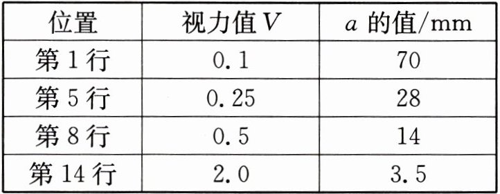 ②小明在制作过程中发现某行字母 E 的宽度 a 的值 17.5 mm,请问该行对应的视力值是多少?