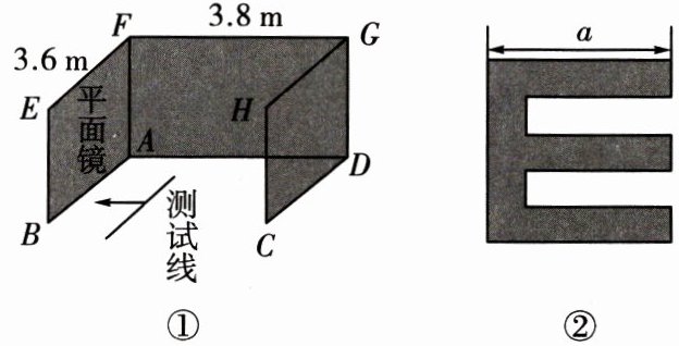 (1)如图,若将视力表挂在墙 CDGH 上,在墙 ABEF 上挂一面足够大的平面镜,根据平面镜成像原理可知:测试线应画在距离墙 ABEF