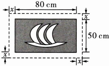 12. 如图,在一幅长 80 cm、宽 50 cm 的矩形风景画的四周镶一条金色纸边,制成一幅矩形挂图. 如果要使整个挂图的面积是 $5400 cm^{2}$,设金色纸边的宽为 x cm,求 x 满足的方程,并把方程化成一般形式.