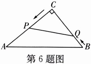6. 如图,在 $Rt\triangle ACB$ 中,$\angle C = 90^{\circ}$,$AC = 30$ $cm$,$BC = 25$ $cm$,动点 $P$ 从点 $C$ 出发,沿 $CA$ 方向运动,速度是 2 cm/s;同时,动点 $Q$ 从点 $B$ 出发,沿 $BC$ 方向运动,速度是 1 cm/s,则经过