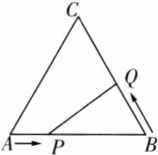 例 如图,在边长为 12 cm 的等边三角形 $ABC$ 中,点 $P$ 从点 $A$ 开始沿 $AB$ 边向点 $B$ 以 1 cm/s 的速度移动,点 $Q$ 从点 $B$ 开始沿 $BC$ 边向点 $C$ 以 2 cm/s 的速度移动,若 $P$,$Q$ 两点分别从 $A$,$B$ 两点同时出发,其中任意一点到达目的地后,两点同时停止运动。求经过几秒后$\triangle BPQ$ 的面积为 $10\sqrt{3}$ $cm^{2}$?