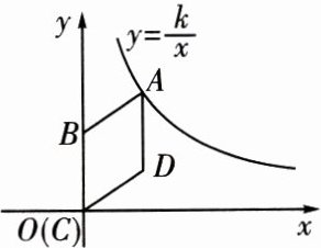 9. 如图,在平面直角坐标系中,菱形 $ ABCD $ 的顶点 $ C $ 与原点 $ O $ 重合,点 $ B $ 在 $ y $ 轴的正半轴上,点 $ A $ 在反比例函数 $ y = \frac{k}{x} $($ k > 0, x > 0 $)的图象上,点 $ D $ 的坐标为 $ (4, 3) $,则 $ k $ 的值为