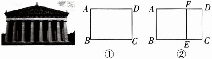 ; $(2) $如图$②,$将图$①$中的黄金矩形裁剪掉一个以$ AB $为边的正方形$ ABEF,$得到新的矩形$ DCEF,$猜想矩形$ DCEF $是否是黄金矩形,并证明你的结论。