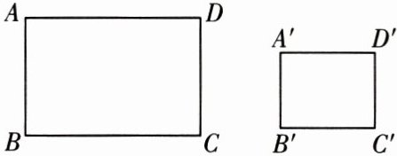 10. 如图,已知矩形 $ABCD$ 和矩形 $A'B'C'D'$,$AB = 8\mathrm{cm}$,$BC = 12\mathrm{cm}$,$A'B' = 4\mathrm{cm}$,$B'C' = 6\mathrm{cm}$。