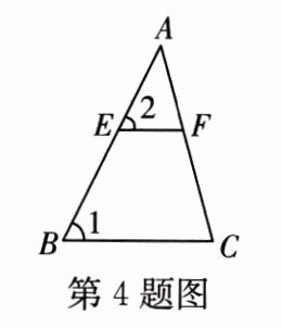 $4. $如图,在$\triangle ABC$中,点$E,$$F$分别在边$AB,$$AC$上,$\angle 1=\angle 2。$若$BC = 4,$$AF = 2,$$CF = 3,$则$EF$的长为