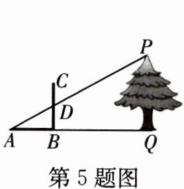 5. 【数学文化】[2023江西]《周髀算经》中记载了“偃矩以望高”的方法。“矩”在古代指两条边呈直角的曲尺(即图中的$ABC$)。“偃矩以望高”的意思是把“矩”仰立放,可测量物体的高度。如图,点$A$,$B$,$Q$在同一水平线上,$\angle ABC$和$\angle AQP$均为直角,$AP$与$BC$相交于点$D$。测得$AB = 40\ cm$,$BD = 20\ cm$,$AQ = 12\ m$,则树高$PQ =$