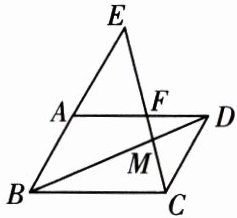 例 如图,在$□ ABCD$中,过点$C$作$CE$交$BD$于点$M$,交$AD$于点$F$,交$BA$的延长线于点$E$。若$FM = 2$,$EF = 6$,求$CM$的长。