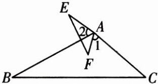 因为$\angle 1=\angle 2$,所以$\angle 1+\angle BAF=\angle 2+\angle BAF$,即$\angle BAC=\angle EAF$。