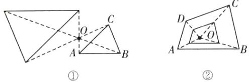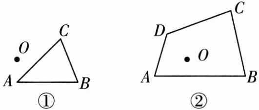 (2)如图②,将四边形 $ ABCD $ 缩小到原来的$\frac{1}{2}$,且位似中心为图形内部的点 $ O $(只需画出一种情况即可).