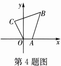 4. [2023辽宁]如图,在平面直角坐标系中,四边形$OABC$的顶点坐标分别是$O(0,0)$,$A(1,0)$,$B(2,3)$,$C(-1,2)$. 若四边形$OA'B'C'$与四边形$OABC$关于原点$O$位似,且四边形$OA'B'C'$的面积是四边形$OABC$面积的$4$倍,则第一象限内点$B'$的坐标为