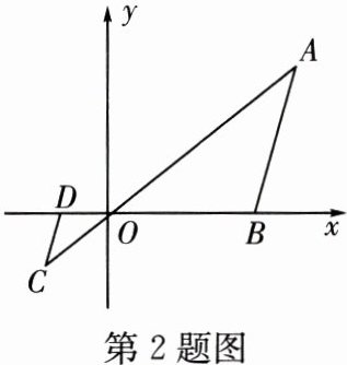 2. 如图,在平面直角坐标系中,$\triangle OAB$的顶点为$O(0,0)$,$A(4,3)$,$B(3,0)$. 以点$O$为位似中心,在第三象限内作与$\triangle OAB$的位似比为$-\frac{1}{3}$的位似图形$\triangle OCD$,则点$C$的坐标为 (