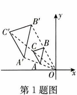 1. [2024浙江]如图,在平面直角坐标系中,$\triangle ABC$与$\triangle A'B'C'$是位似图形,位似中心为点$O$. 若点$A(-3,1)$的对应点为$A'(-6,2)$,则点$B(-2,4)$的对应点$B'$的坐标为 (