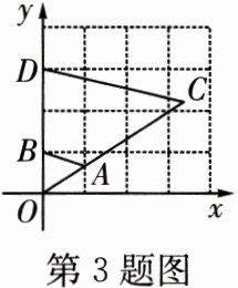 3. 如图,在平面直角坐标系中,将$\triangle OAB$以原点$O$为位似中心放大后得到$\triangle OCD$. 若$B(0,1)$,$D(0,3)$,则$\triangle OAB$与$\triangle OCD$的位似比是 (
