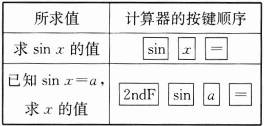 2. 利用计算器求锐角的正弦值或由正弦值求锐角的方法: