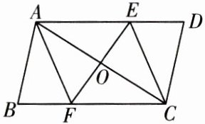 12. 【几何直观】如图,在$□ ABCD$中,点$E$,$F$分别在$AD$,$BC$上,且$ED = BF$,连接$AF$,$CE$,$AC$,$EF$,且$AC$与$EF$相交于点$O$。