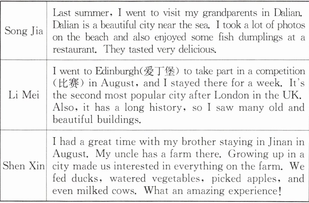 )1. Where did Song Jia go last summer?A. To Dalian. B. To Edinburgh. C. To Jinan.