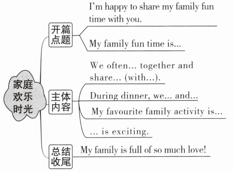 (和……分享我的家庭欢乐时光) you. My family fun time is on Friday night.2. 主体内容: