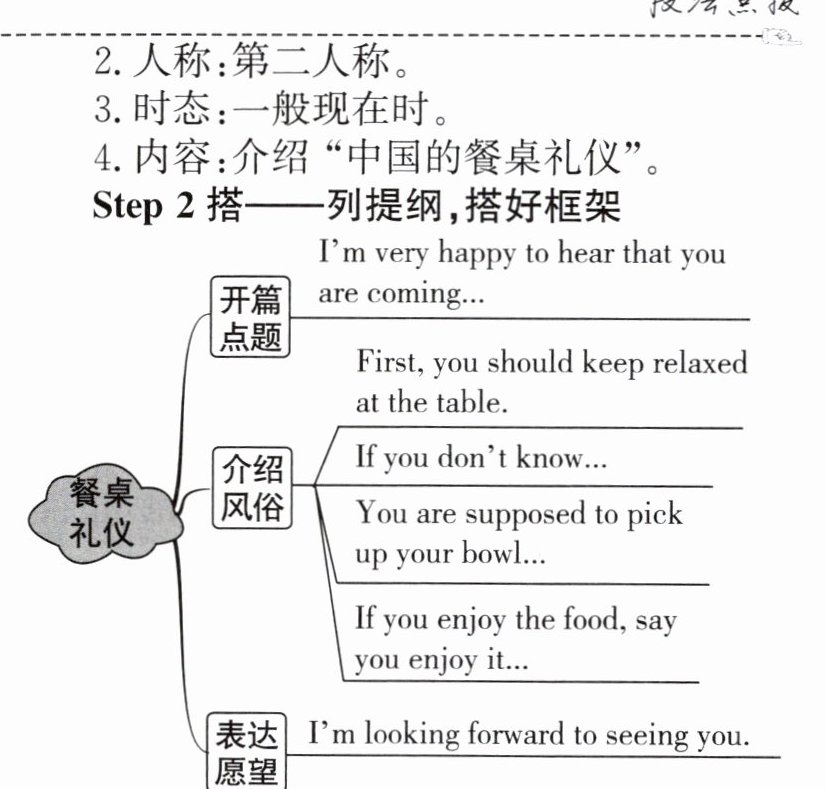 ①First, you should keep relaxed at the table. If you don't know how to use chopsticks, just watch other people and follow them. ②If you still don't know what to do, don't be shy about asking the person next to you politely. ③If you are uncomfortable or nervous, you'd better ask others for help. In China, you are supposed to pick up your bowl while eating. ④If you enjoy the food, say you enjoy it. You can also thank the host and hostess for the meal and for their kindness.