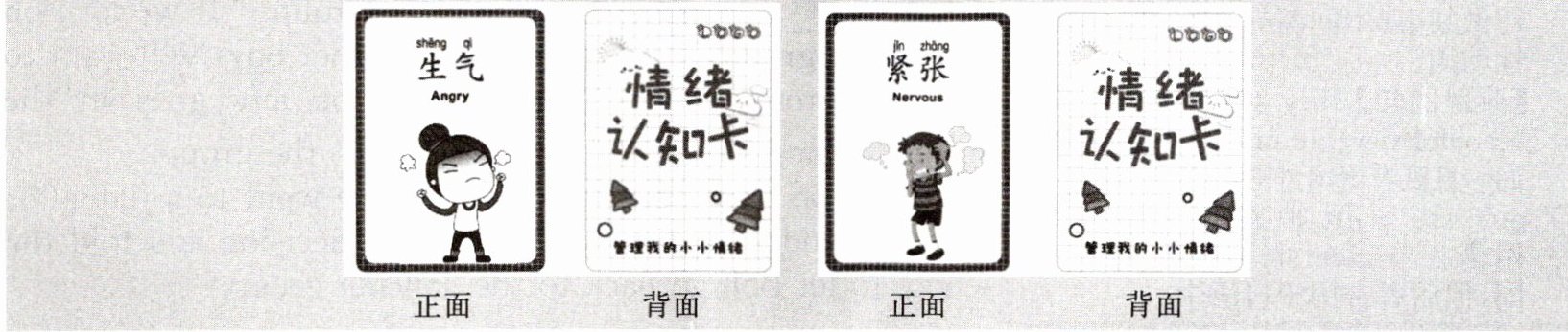 2. 不同的事物会引起不同人的不同情绪。请你制作几张情绪卡片,然后用英语向同班同学介绍这些情绪,简述什么事情会引起你的情绪,并一起讨论该如何转化这些消极情绪。