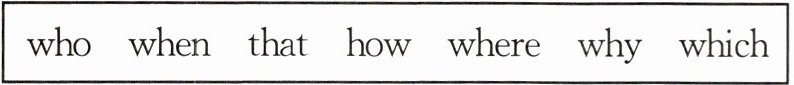1. where 2. when 3. how 4. that 5. who 6. which 7. why