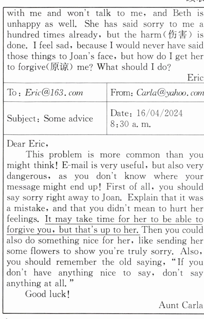 4.Explain and do something nice for her or him.(主观题,言之有理即可)