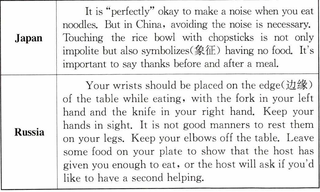 )2. What is different between France and Russia in the manners?A. Where to cut food.