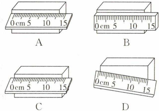 2. 用厚刻度尺测木块的长度,如图所示四种方法中正确的是 (