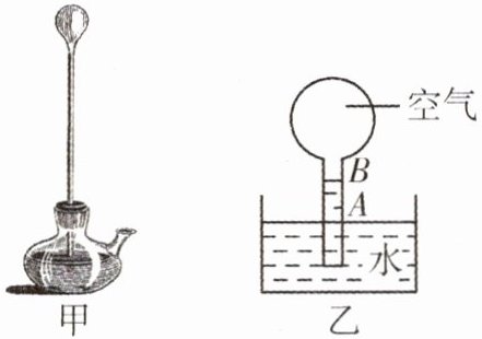 13. 科技应用 如图甲为存入于佛罗伦萨摄影档案馆的 16 世纪伽利略发明的气体温度计,它是世界上第一支伽利略气体温度计。图乙为它的简化图,球形容器内是空气,下方的容器里盛有水,它是根据