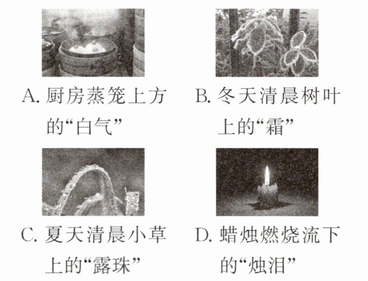 3. 下列现象形成的过程中,吸收热量的一组是(