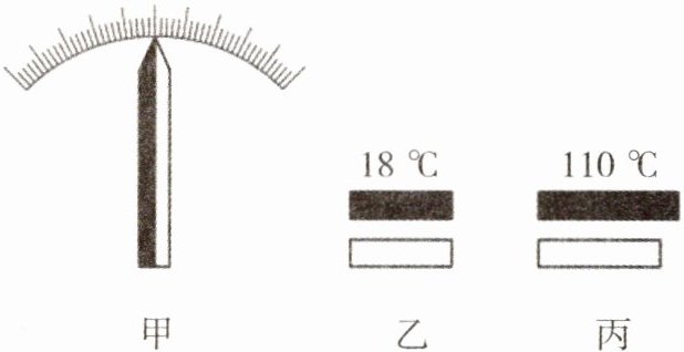 11. 科技应用 小明将形状相同的铝片和铜片铆在一起制作了如图甲所示的双金属片温度计(温度升高或降低时,双金属片会发生弯曲,从而带动指针左右偏转)。分析乙、丙两图可知,在相同条件下,