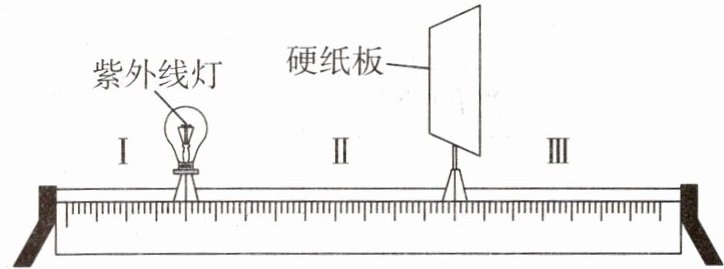 (选填“Ⅰ”“Ⅱ”或“Ⅲ”)区域,且调整玻璃板与硬纸板平行;步骤二:打开紫外线灯,荧光物质发光;