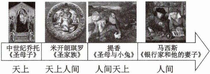 变化原因:文艺复兴弘扬人文主义;商品经济与资本主义萌芽的发展;市民阶层的壮大;教会势力的相对衰落。