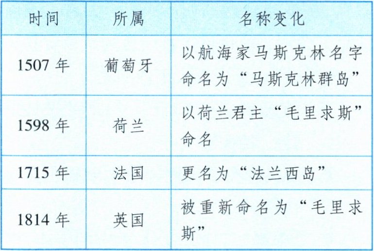 8. 下表中“毛里求斯”名称的变化可以反映出( )