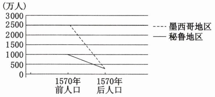 材料一 1570年前后墨西哥和秘鲁地区人口变动